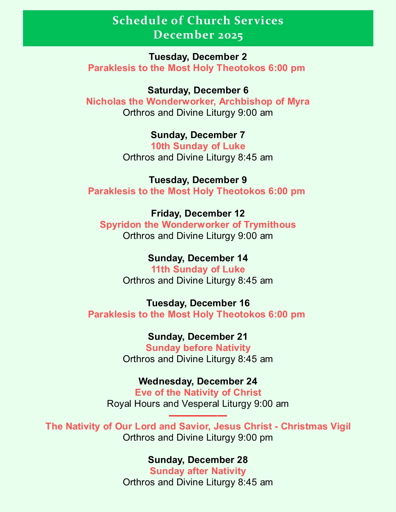 Saints and Feasts Commemorated