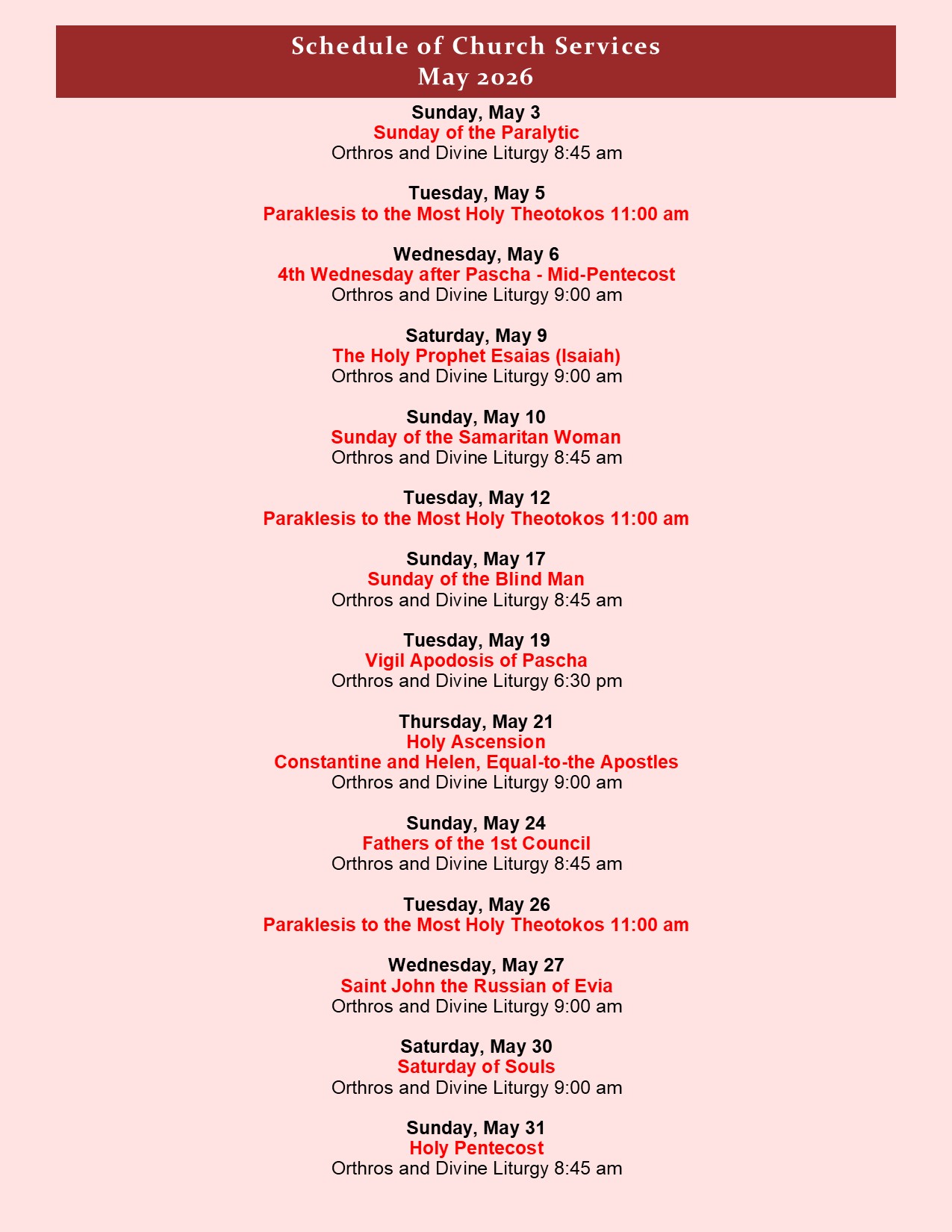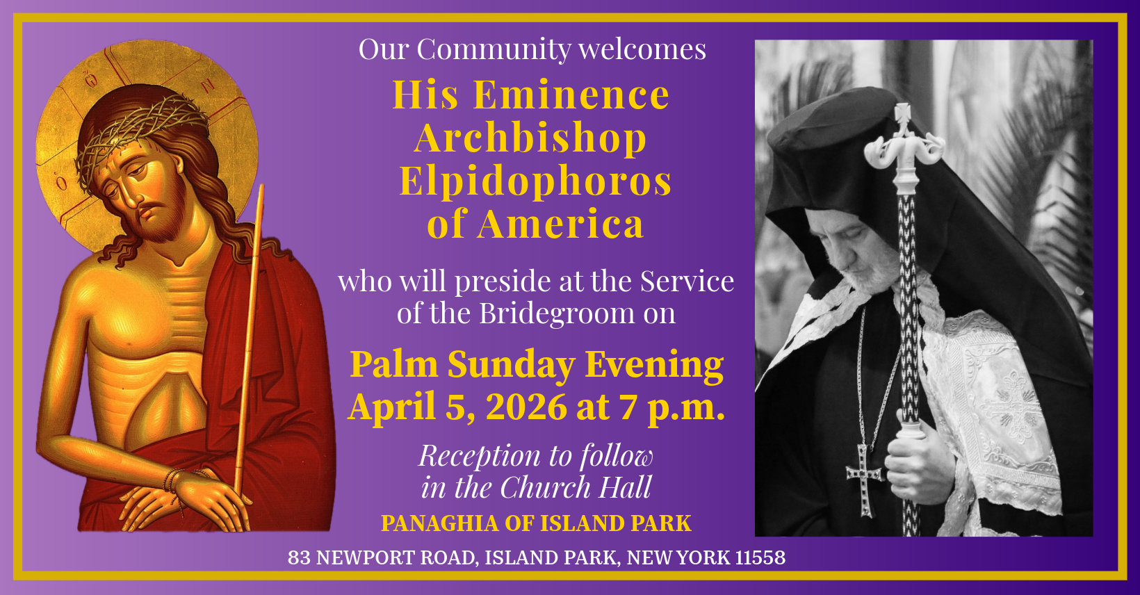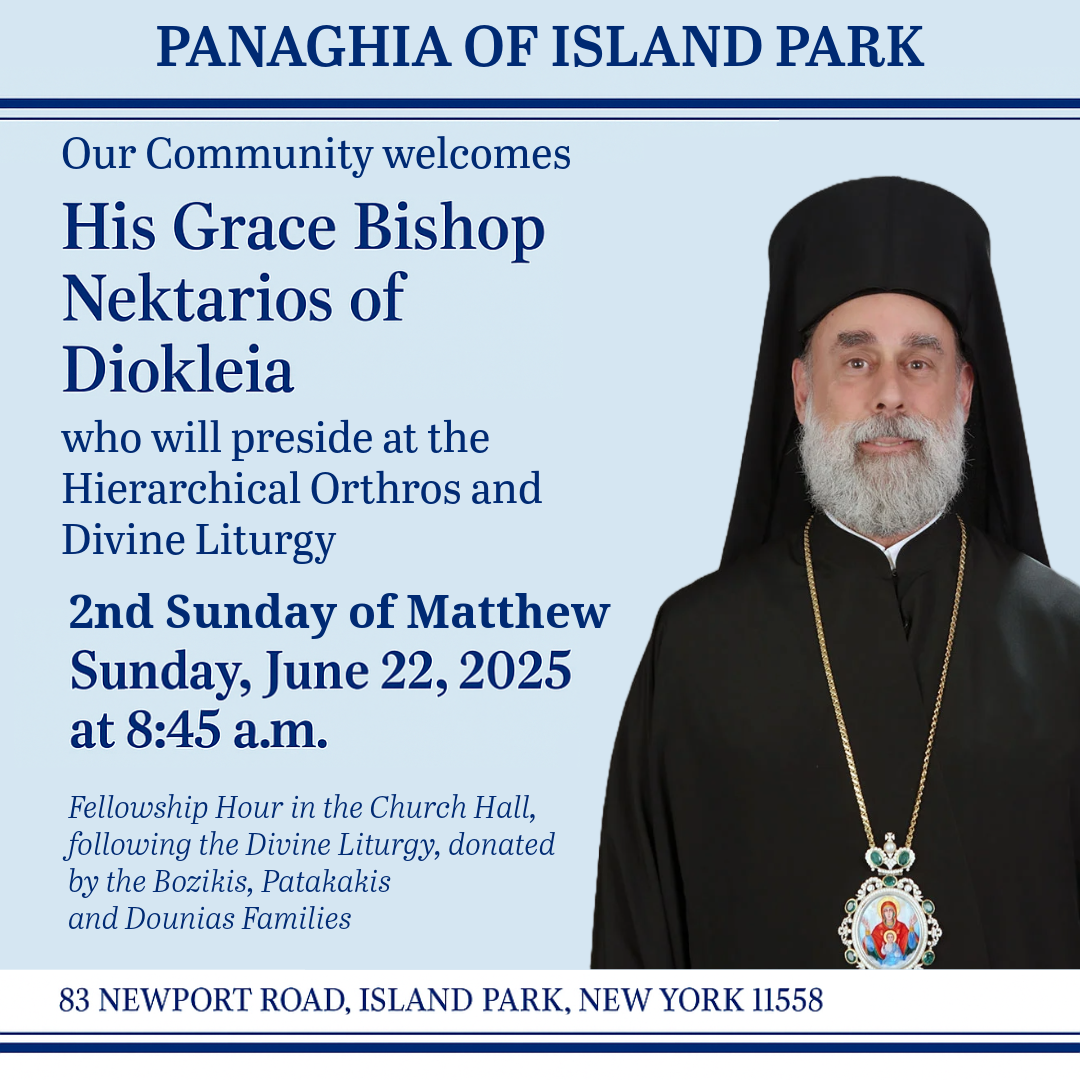 I extend an invitation to you and your families to join us in worship and I look forward to welcoming you to our parish in person. I pray that through the blessings of our Panaghia, you will feel a sense of peace, comfort, and at home in Panaghia's home of Island Park, as we worship together as a spiritual family.