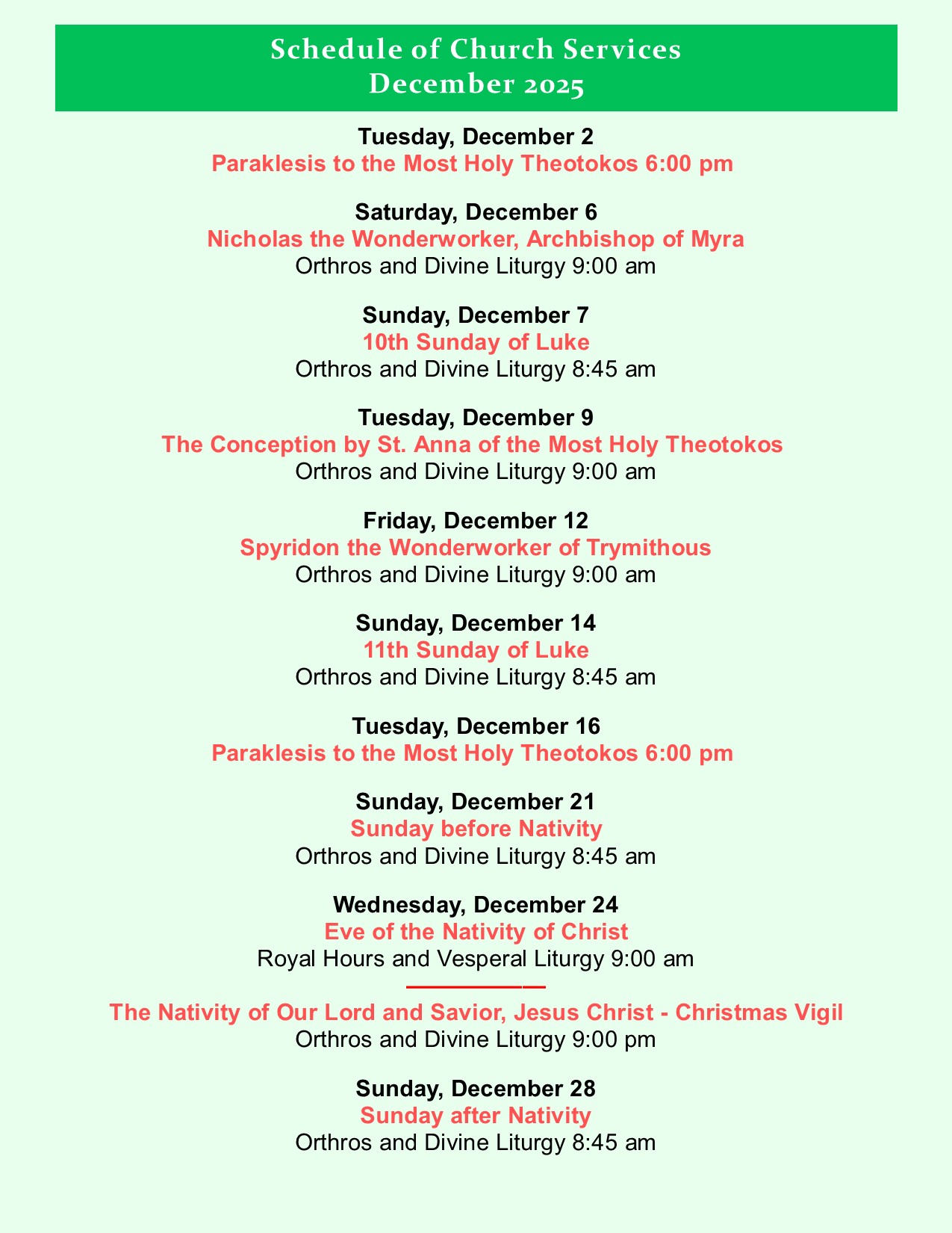 Saints and Feasts Commemorated