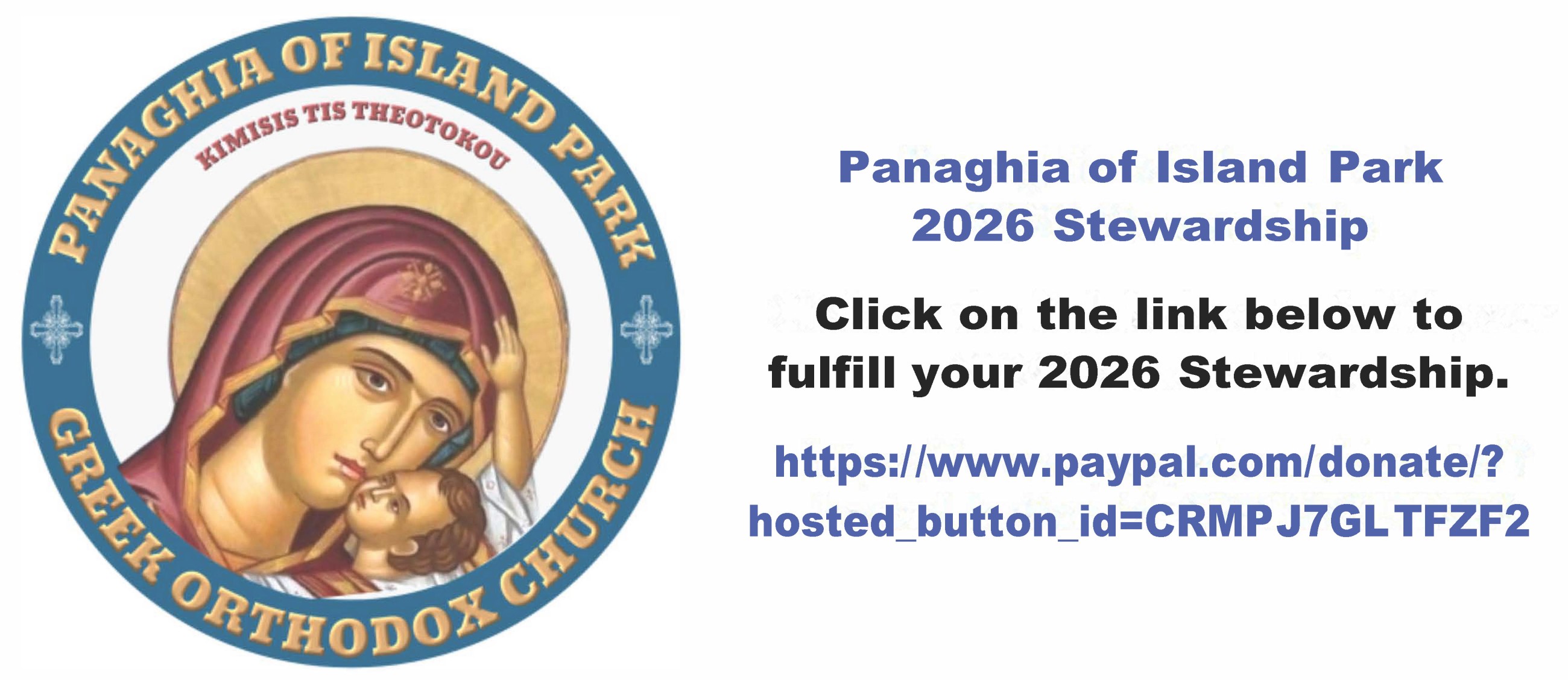 In gratitude of God's many blessings, please consider making a donation to Panaghia of Island Park for the continuing of our ministries and the growth of our parish.